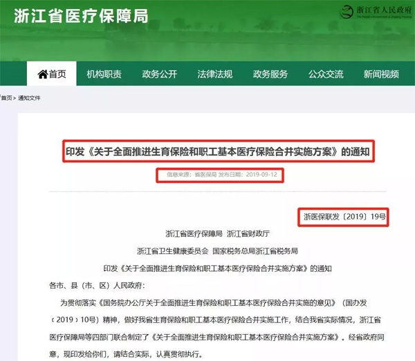 9月12日,浙江省醫保局發布《關于全面推進生育保險和職工基本醫療保險合并實施方案》的通知,明確兩險合并的具體實施方案。