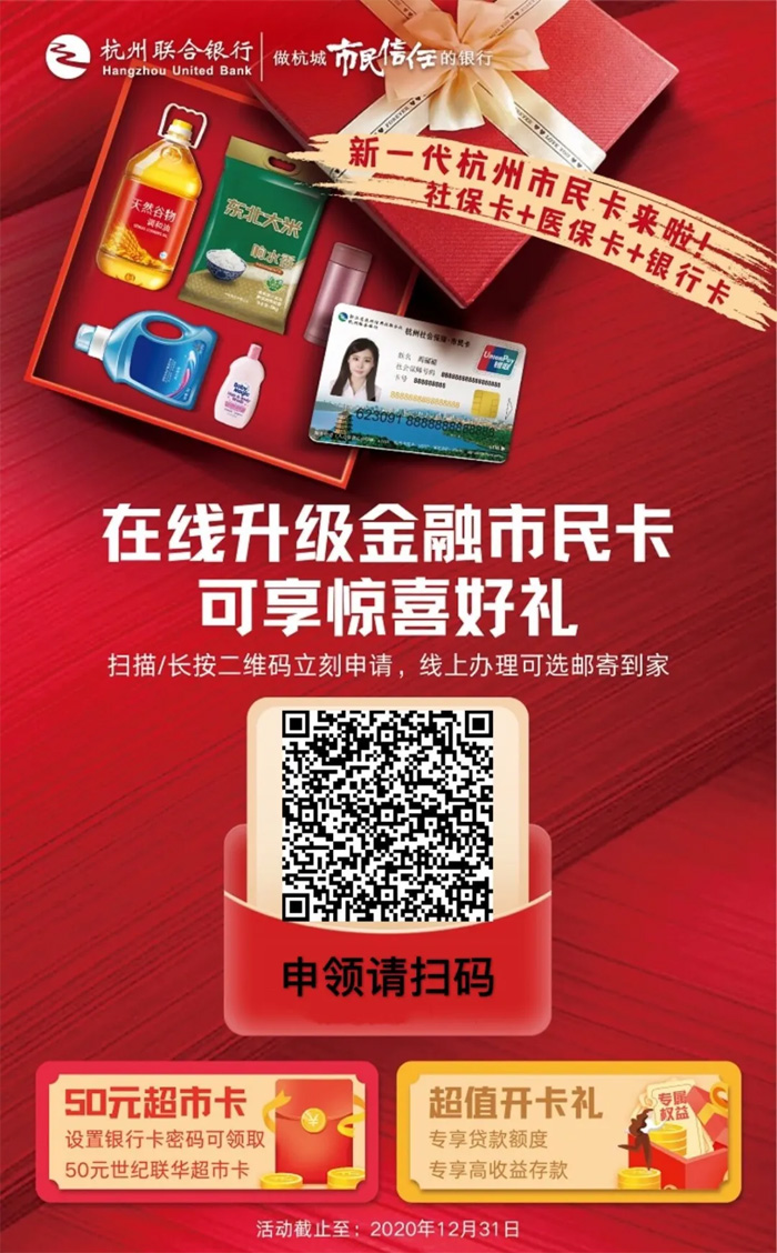 So,你的市民卡更新了嗎? 你知道怎么辦理更新市民卡嗎? 為了讓各位小伙伴享受足不出戶的升級服務 杭州仁本攜手杭州聯合銀行 推出了“市民卡免費升級”服務 免費辦理,免費升級 還有50元超市卡免費送