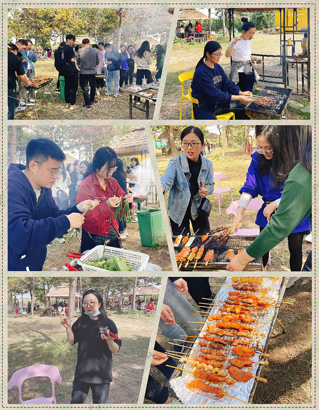 中午時分,小伙伴們盡興歸來,燒烤派對正式開場!杭州仁本小伙伴們聚在一起,有的生火,有的串串,有的烤制,有的撒粉,合作相當(dāng)默契!大家一邊享受自己烤制的美食,一邊聊著生活和工作中的趣事,還有“麥霸”同事為我們獻(xiàn)上一首首好聽的歌曲。