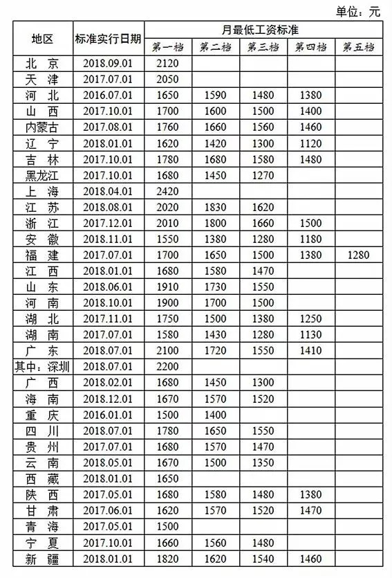 1月10日,人社部網站公布全國各地區月最低工資標準情況(截至2018年12月)和全國各地區小時最低工資標準情況(截至2018年12月)。快來看看你家鄉的最低工資標準是多少!