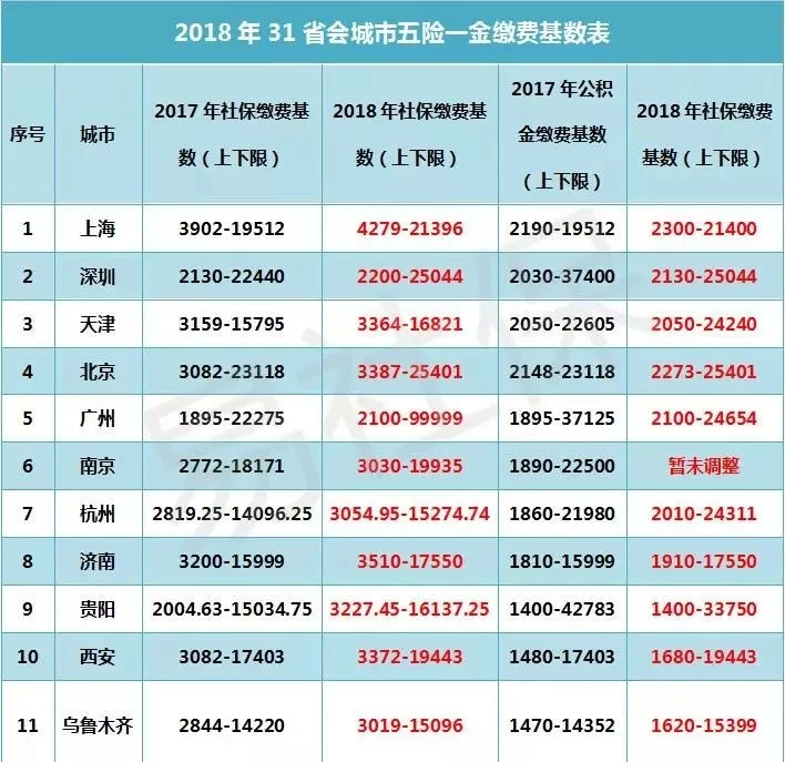 5、2018年各大城市社保繳費基數表出爐!工資少了?待遇能漲么?