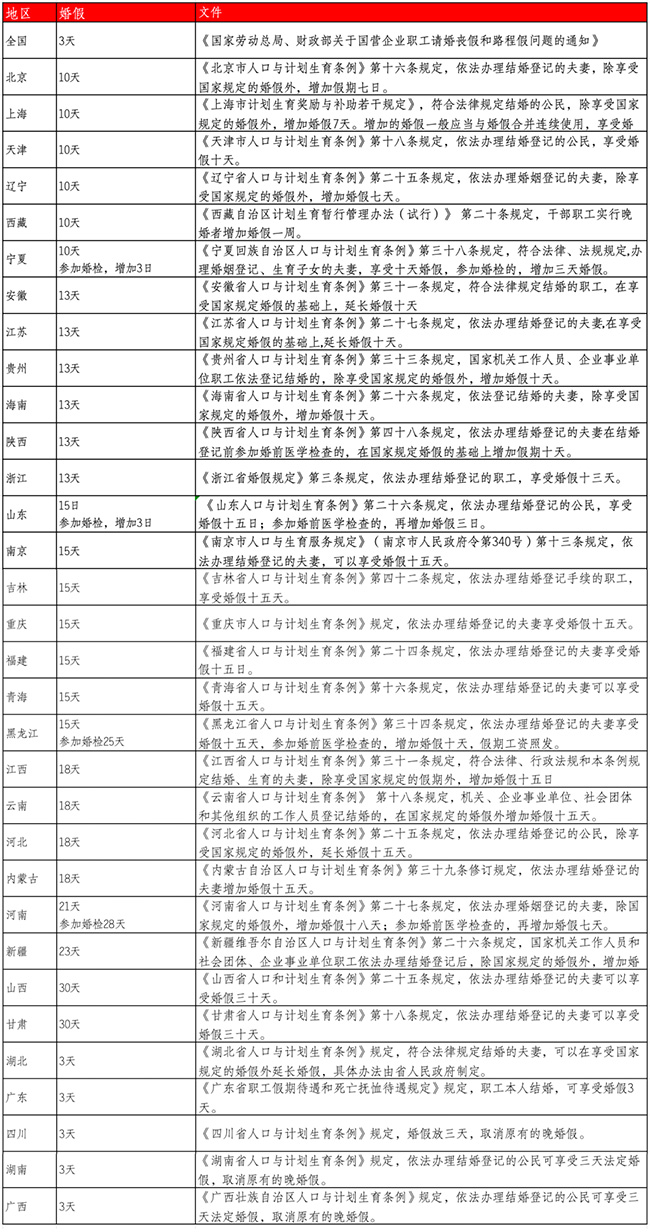 注:湖北省人民政府辦公廳發布了《關于加快完善生育支持政策體系更加務實有效建設生育友好型社會的若干措施》的通知,其中明確湖北省延長婚假至15天。