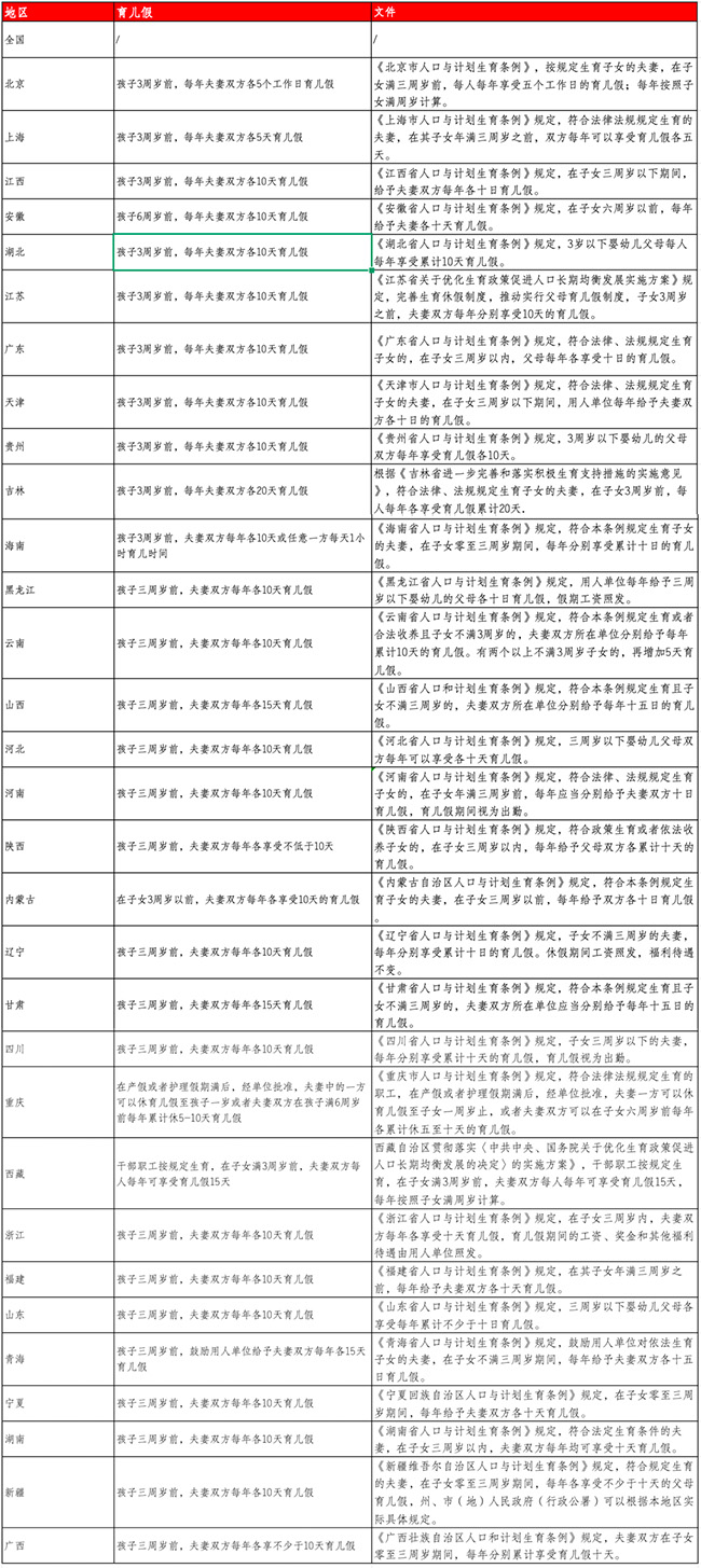 隨著各省市《人口計劃與生育條例》的修改,大多數省份明確了育兒假。